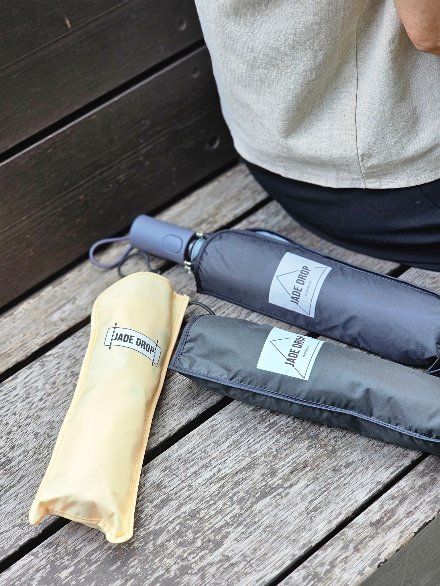 因為隨身要帶著,我總是在尋找輕便又能遮陽的傘,我買過好多,從199到一兩千塊的傘,甚至到國外也會到處尋找,有時是好用但體積大,不方便放在小包包,有的是很遮陽,但是因為黑膠很厚,非常不好收起,也有的一下子就壞了。後來我總是刻意買貴一點,好一點的傘,但太貴的缺點是萬一掉了,就會很心痛。