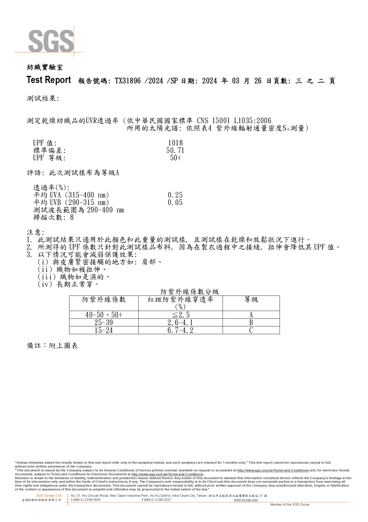 - 並透過 SGS 檢測,實測達到 UPF 1018