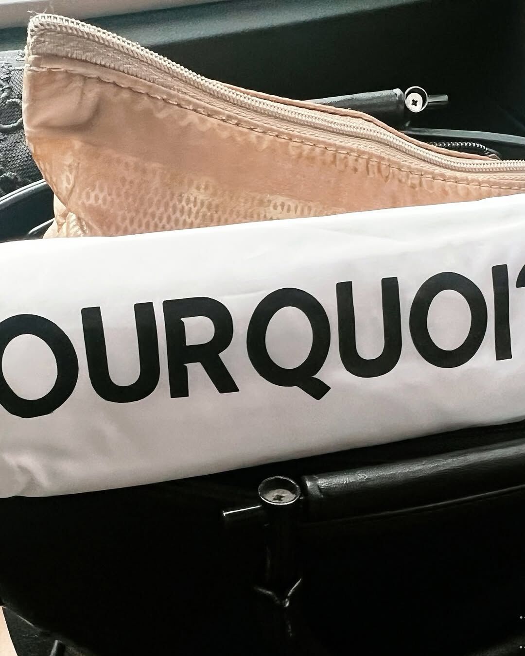 「POURQUOI」在法文中意為「為什麼」——象徵自由與探索。