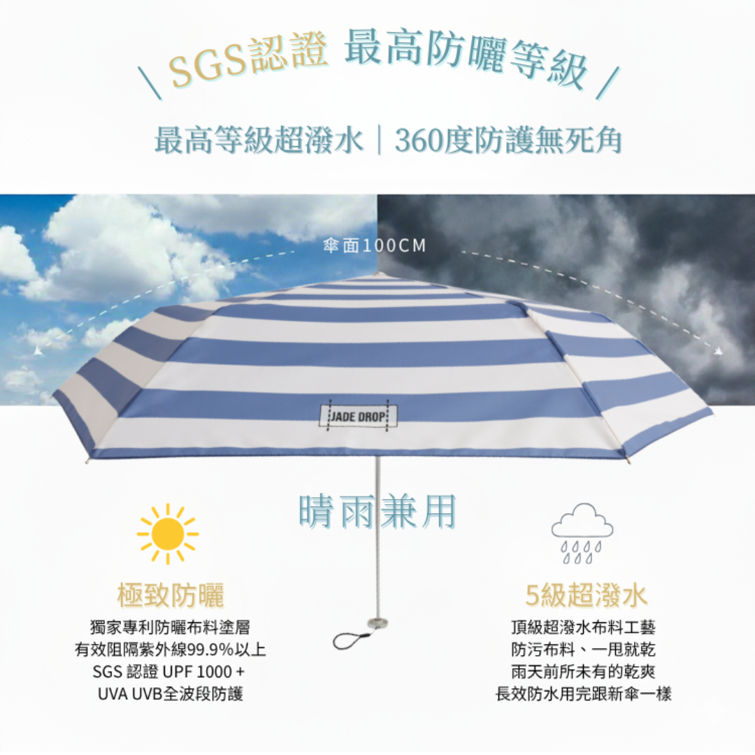 ➤ 最頂級超潑水加工,防污傘面、一甩即乾!