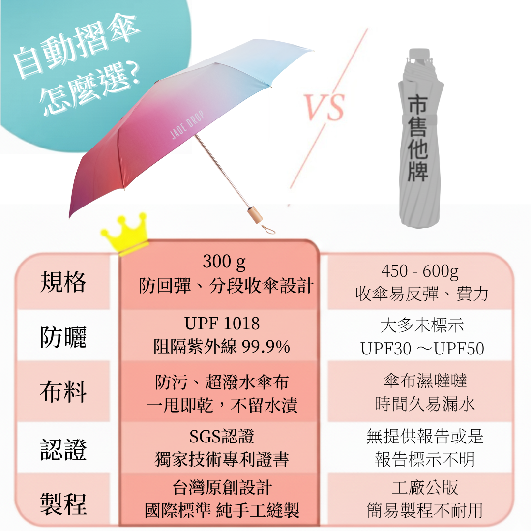 ➤ 頂級超潑水加工、傘面一甩即乾!