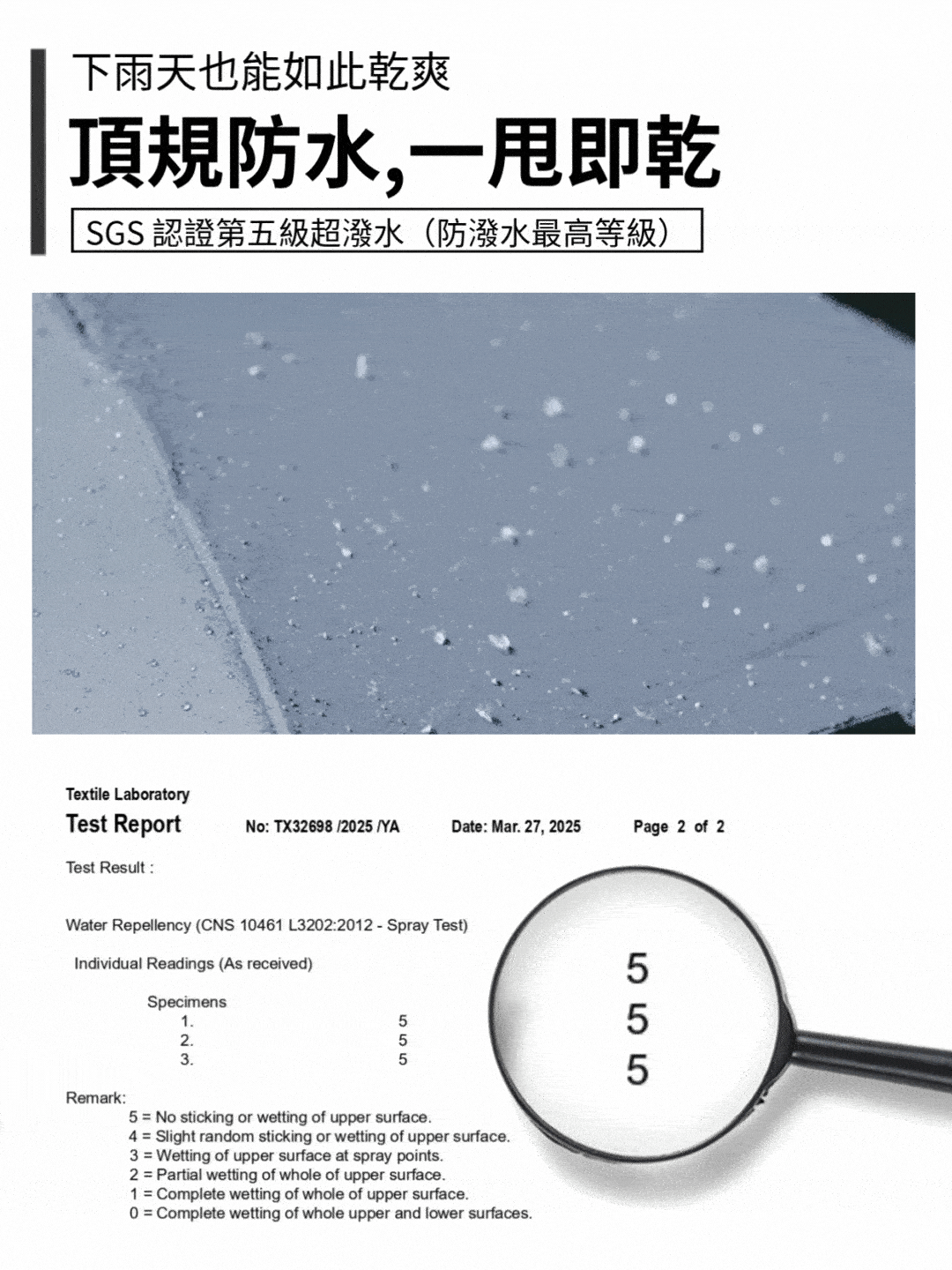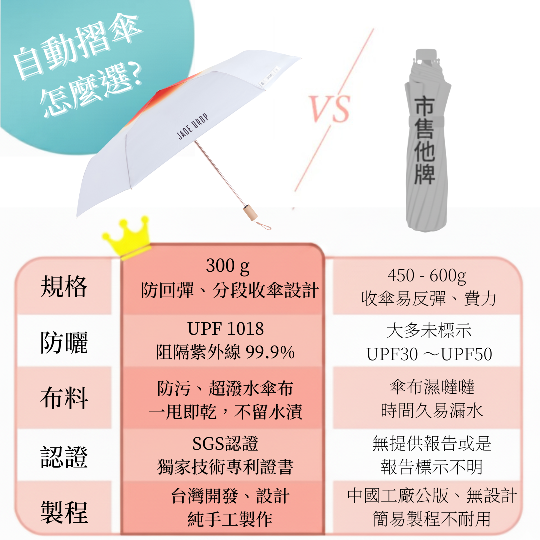 ➤ 頂級超潑水加工,防污傘面、一甩即乾!